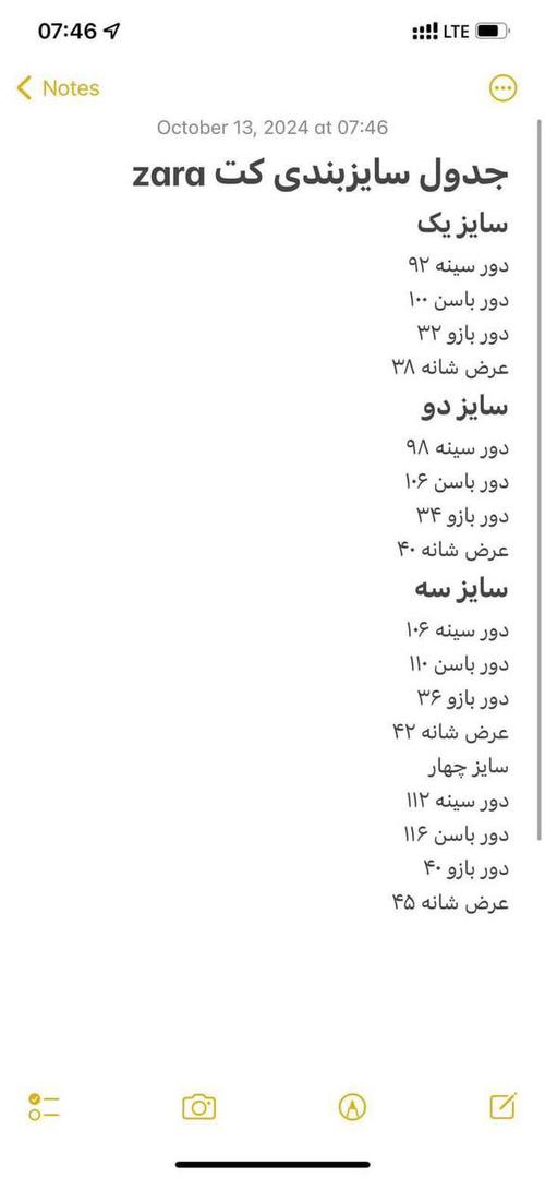 سایزبندی 36 تا 46